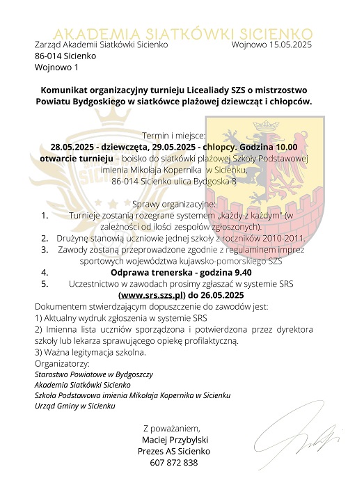 Komunikat dotyczący organizacji zawodów sportowych w piłce siatkowej plażowej